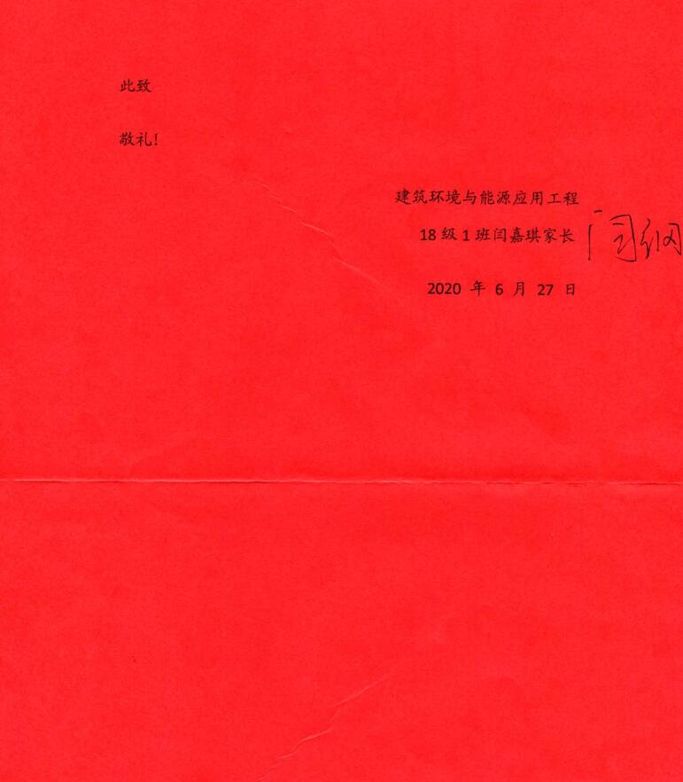 6月27日,兰州交通大学环境与市政工程学院收到一封来自建环1801班学生家长的感谢信。信中对刘智勇、董康乐两位老师在疫情期间给予未返校学生闫嘉琪在学习上的关心和帮助表示衷心的感谢。