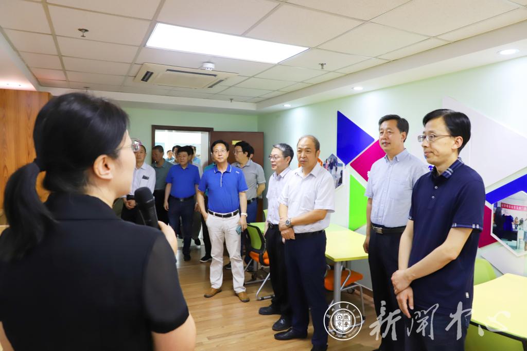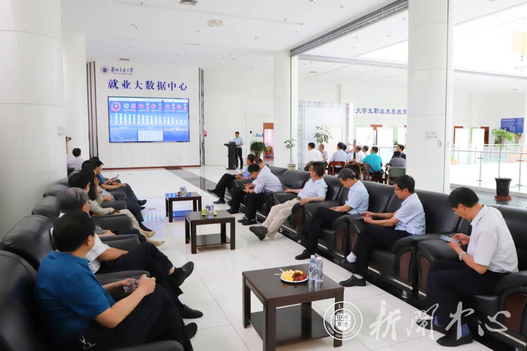 随后,我校招生就业处就业工作负责人详细介绍了我校就业工作的相关经验,就业指导教师针对自我介绍以及毕业生思维与幸福等内容进行了微课展示。与会领导在相关人员的陪同下先后参观了我校大学生职业发展教育服务中心与创新创业基地。