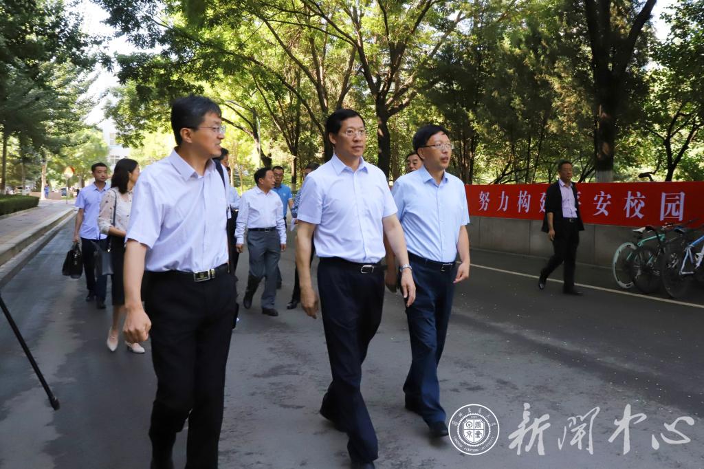 8月24日,省委常委、省委政法委书记、省委依法治省办主任胡焯带领全省“七五”普法第一检查验收组,到兰州交通大学开展集中检查验收。省司法厅厅长牛纪南、省人大常委会法工委副主任陆艳宁,我校党委书记杨子江、校长李引珍、党委副书记买寿清、副校长马军党等陪同检查。