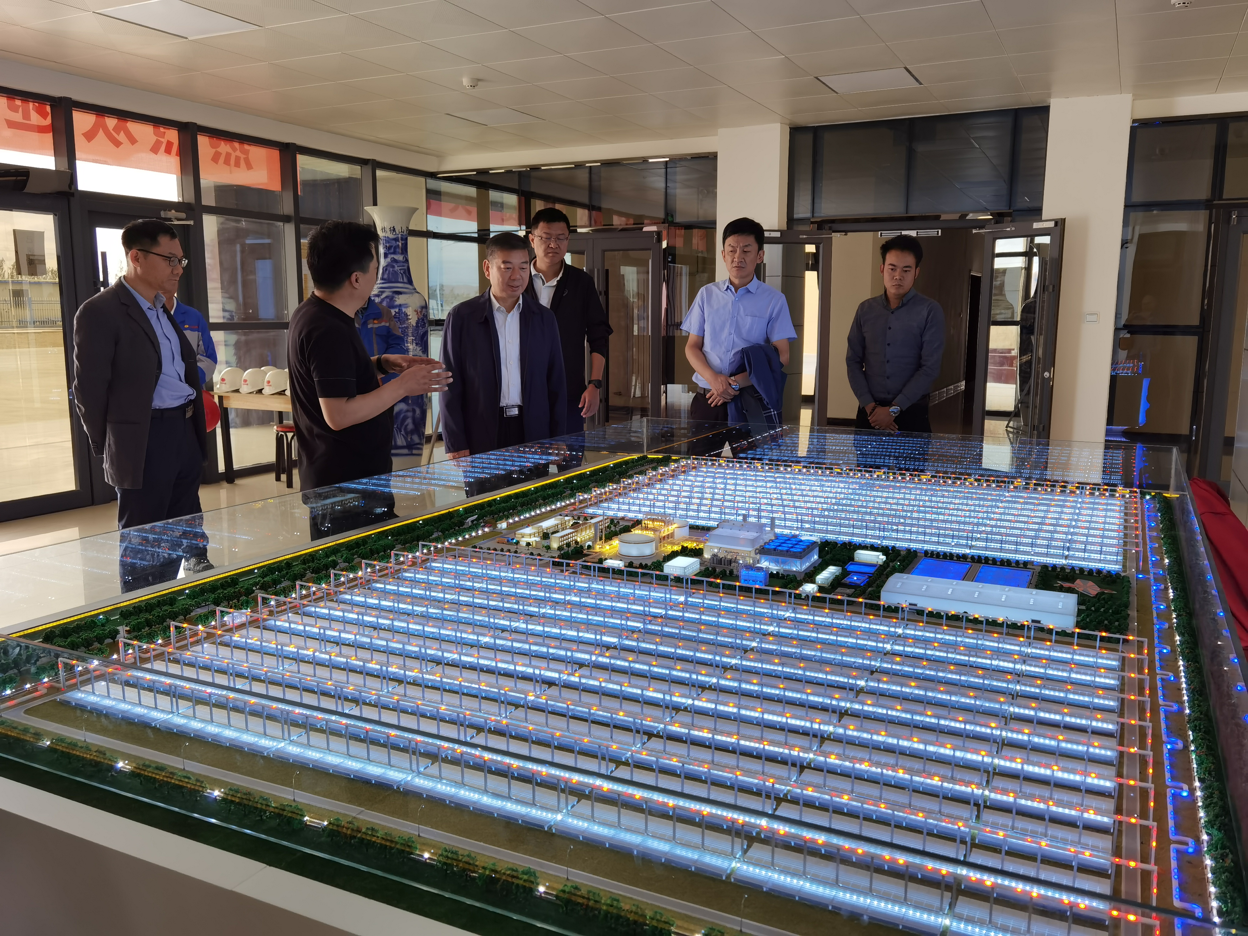 党建武一行现场参观了聚光集热场、熔盐储换热岛、汽轮发电机组及电站主控室等电站主要设施及部分装置设备工作过程,在主控室通过监控大屏观看了电站实际发电运行过程和参数,了解了电站通过大规模的聚光储热,将间歇式太阳能转变成了可持续供能的优质清洁电能的重大意义。