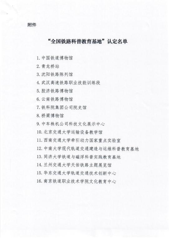 近日,由中国铁道学会组织的“全国铁路科普教育基地”认证工作在北京结束,在我校科技处、校团委联合筹备、积极申报下,我校天佑铁路主题展览馆获批为全国铁路科普教育基地。