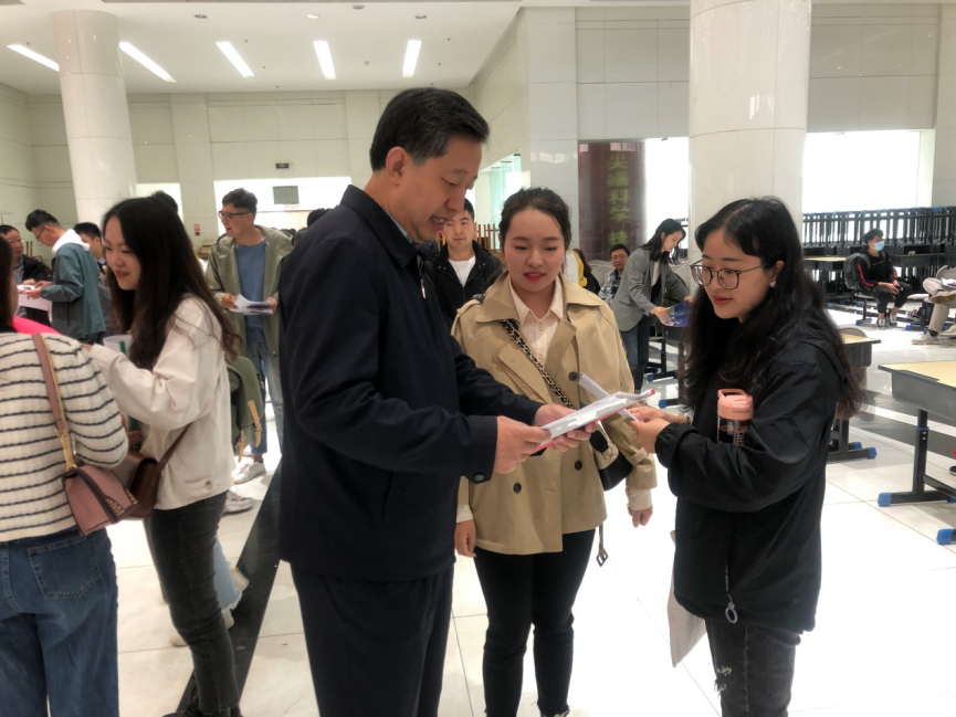 在同期举行的设计院专场招聘会上,来自建筑学院、土木学院、环境学院、运输学院、经管学院等2021届本科和研究生毕业生300余人向19家设计院咨询、递交求职简历和商定签约事宜。马军党在招就处负责人陪同下到会场视察,并与设计院招聘负责人、毕业生和工作人员亲切交谈,了解招聘和签约情况。