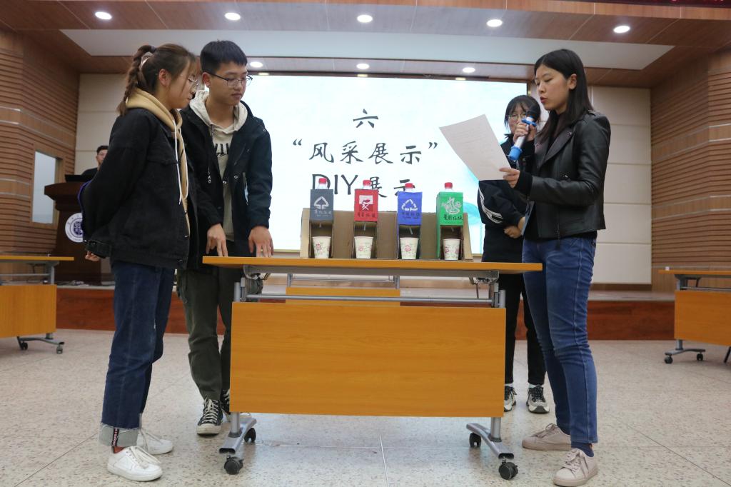 本次活动历时两个月,通过推送垃圾分类相关知识问卷等形式,共计1136名同学参与了此次线上答题。参赛选手围绕垃圾分类、环境保护相关知识,按照“干湿分离”的原则就干垃圾、湿垃圾、有害垃圾、可回收垃圾等分类方式与内容进行了“扬帆起航”、“谁与争锋”、“舌战群儒”、“横扫千军”等各个环节的答题和论述,并在最后“风采展示”环节为大家做了本组用垃圾废料所做的手工艺品、实用物品的展览讲解。
