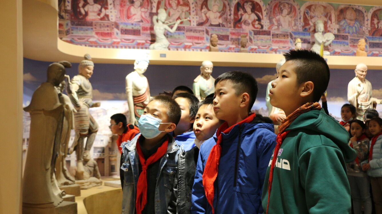 敦煌彩塑传承基地的老师从彩塑的发展历史、制作技艺、趣味知识与传承创新几方面为前来观展的师生做了详细讲解,并引导孩子们积极参与讨论。通过现场参观、观看视频短片等方式,同学们开阔了视野,了解了灿烂的敦煌文化。