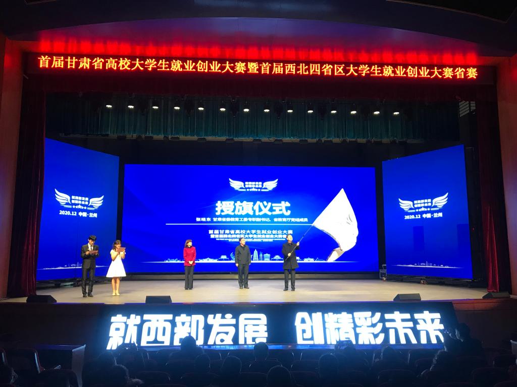 颁奖典礼上,我校兰晓伟同学作了题为《他山之石,可以攻玉》的分享发言。我校作为第二届甘肃省高校大学生就业创业大赛承办单位参加了授旗仪式。