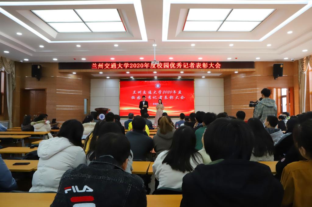 为表彰先进,进一步促进我校校园媒体学生记者队伍的建设与发展,提高广大学生记者参与新闻宣传的积极性、主动性和创新性,12月18日中午,2020年度兰州交通大学校园优秀记者表彰大会在二教报告厅举行。宣传部全体工作人员以及校报记者团、广播站、官方微信、抖音平台、校电视台全体同学及校园新闻宣传学生骨干等200余人参加了大会。