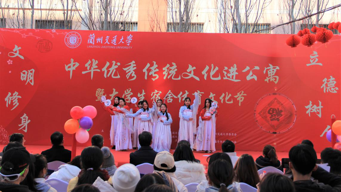 为加强中华优秀传统文化教育,培育和践行社会主义核心价值观,12月24日下午,由校纪委、学生处、校团委、学生公寓管理中心、环境学院在18号学生公寓联合举办的兰州交通大学“文明修身、立德树人”中华优秀传统文化进公寓暨宿舍体育文化节开幕,副校长马军党出席,校纪委、学生处、校团委、公寓管理中心、环境学院、文学院、艺术学院、外语学院主要负责同志出席开幕式。