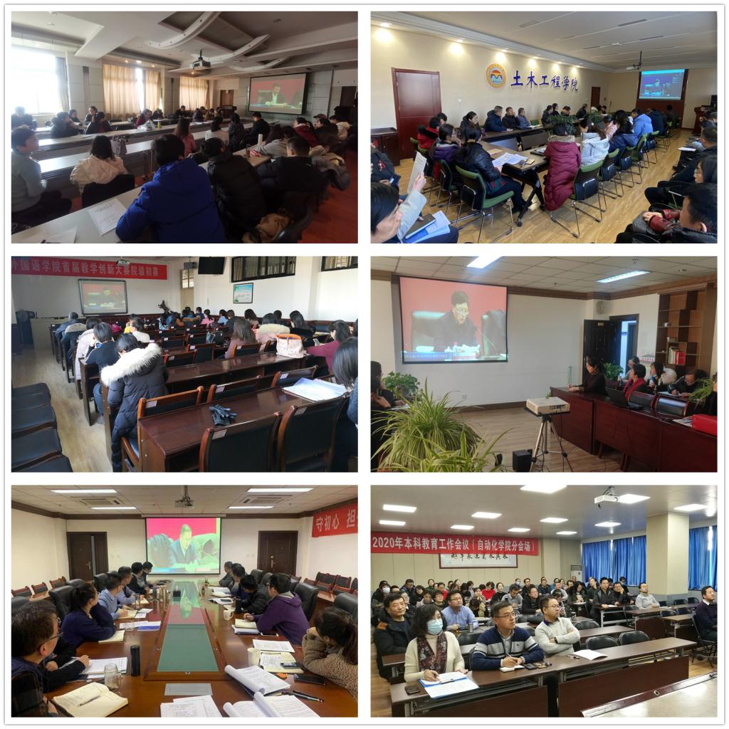 根据疫情防控的要求,各教学单位和相关职能部门在本单位设立了网络会议分会场,组织本单位教职工通过网络视频直播收看了会议。会后各学院(部)结合本次会议主题报告及组织编写的会议学习资料,组织召开下一阶段的学习研讨会议,认真学习本次教育工作会议的报告内容以及校领导讲话精神,广泛开展新时代高等教育思想大学习大讨论,坚持立德树人根本任务,牢固树立本科教育的主体地位,把思想政治工作贯穿教育教学全过程,形成“抓师德、整师风、严学风、重教学、提质量、促发展”的共识,努力把提升本科教育教学工作的各项措施变为广大教职工的自觉行动。