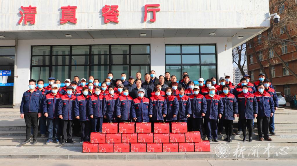 在百苑餐厅,校长李引珍、副校长马军党看望慰问春节期间不能返乡与家人团圆的同学们,向他们致以节日的亲切问候和诚挚祝福,对大家遵守疫情防控规则并就地过年表示衷心感谢。马军党致新春贺词“疫情无情人有情,留校过年校即家”,希望在校的同学要珍爱自己、珍惜时光,如遇突发问题及时上报,叮嘱大家一定要做好节日期间的安全防范工作,确保个人生命健康与校园安全稳定。