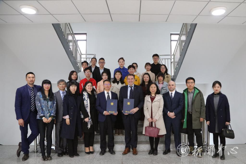 3月30日上午,乌拉圭共和国驻华大使费尔南多·卢格里斯先生(Fernando Lugris)、乌拉圭驻重庆总领事馆代总领事琪娜女士(Agustina Casavalle)、乌拉圭驻重庆总领事馆贸易投资专员布鲁诺先生、乌拉圭驻华大使助理张琪先生一行4人在甘肃省人民政府外事办公室相关负责人陪同下莅临我校访问,李引珍校长在七号实验楼会见了卢格里斯大使一行,陈兴冲副校长和国际交流处相关负责人陪同会见。