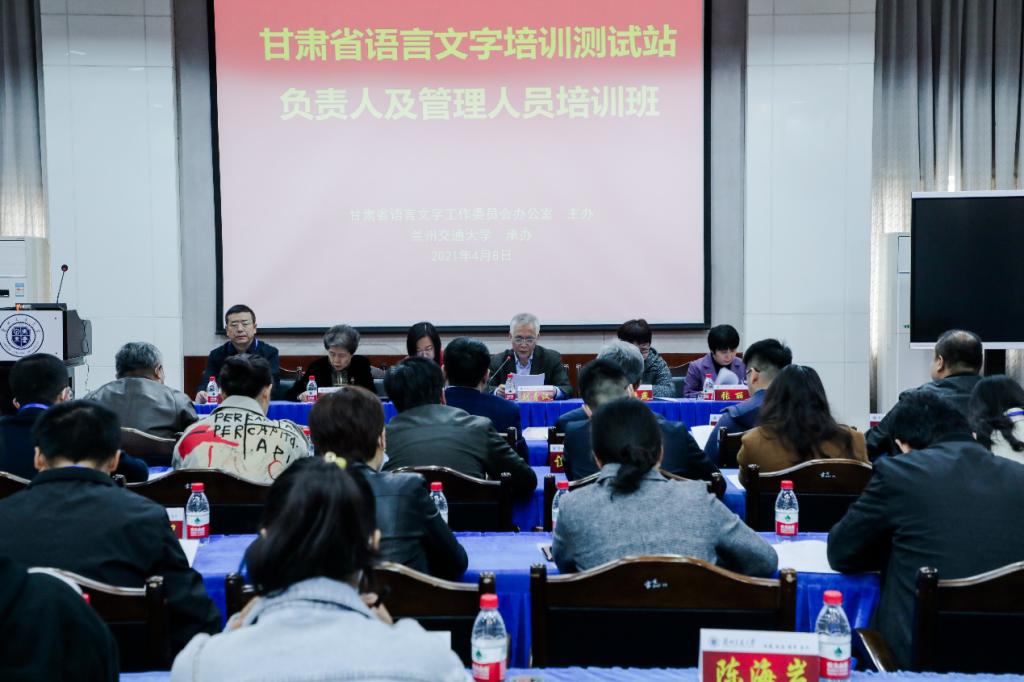 4月8日上午,甘肃省语言文字培训测试站负责人及管理人员第一期培训班在兰州交通大学国际会展中心开班。甘肃省教育厅语言文字管理处副处长卢苇,甘肃省语言文字工作专家咨询委员会有关专家、普通话测试员,以及兰州交通大学文学与国际汉学院负责人等出席开班仪式。
