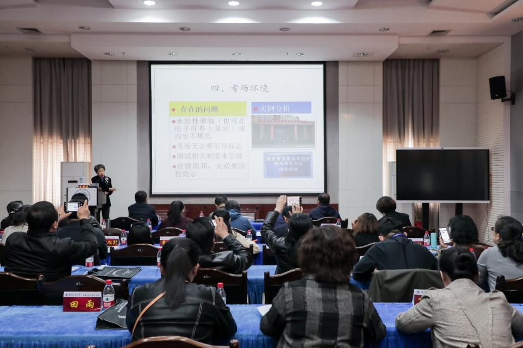 随后,省语委办高晓燕老师从总则、测试工作管理、测试机构、组织实施、测试员、视导员、复审员、测试质量监控等八个方面对《甘肃省普通话水平测试管理办法》进行了解读,并与学员就测试工作进行了研讨。