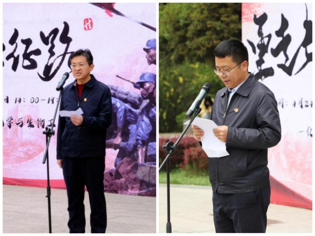 校团委书记高云波致开幕词,号召全体学生“学党史、强信念、跟党走”,认真学习我们党的光辉历史、领会习近平总书记的重要讲话精神,了解长征的光辉历史和长征精神的丰富内涵,牢记实现中华民族伟大复兴的光荣使命,不忘初心,砥砺前行。化工学院党委书记管永红介绍了本次活动的主要内容和注意事项,并对活动纪律作了要求。