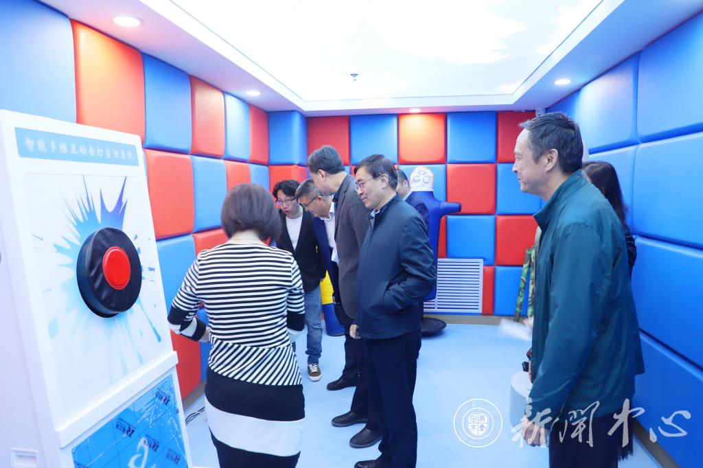 李引珍一行详细了解了中心升级改造建设完成情况,实地查看了心理咨询预约接待室、沙盘游戏室、绘画分析室、身心放松室、心理档案室、团体辅导室、家庭心理咨询室、情绪宣泄室、心理咨询师以及甘肃省辅导员名师工作室、兰州交通大学辅导员工作站等功能区域,现场体验了全息反馈身心减压舱、VR身心放松仪、智能多维击打互动宣泄系统等智能心理设备,并对存在的问题提出了整改建议。