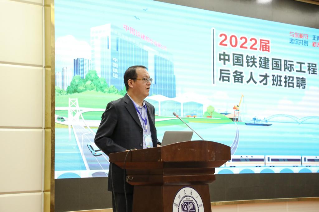5月8日晚,中国铁建股份有限公司——兰州交通大学国际工程后备人才班专场招聘宣讲会在我校二教报告厅召开。中国铁建股份有限公司党委组织部(人力资源处)人才处处长王谐、我校副校长马军党、中国铁建旗下21家子公司的47位招聘代表出席,招生就业处、各学院(部)就业工作负责人参加了宣讲会。