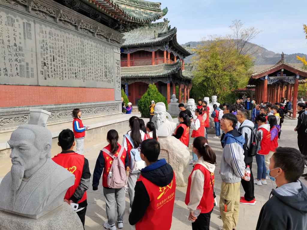 “兰州市国学馆”是依托皋兰县文庙建群而建立的以“弘扬国学精粹,传承中华文明”为宗旨,集展示、教育、休闲为一体的综合性文化旅游景点。近年来,兰州交通大学经济管理学院团委组织近百人的宣传小组,分时间、分批前往兰州市国学馆为来往游客讲解碑文、殿堂等。累计讲解时间200余小时,累计收益人数近1000余人,打造出一道兰州市国学馆独特的风景线。