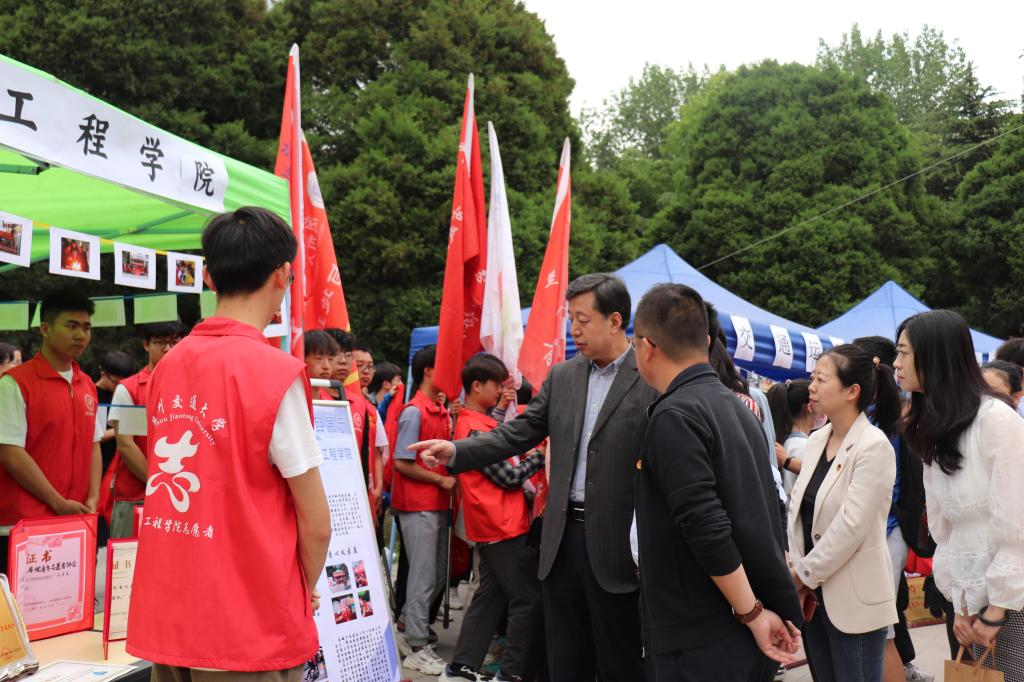 5月18日中午,兰州交通大学第十二届志愿服务文化博览节在图书馆前广场开幕,校党委常委、副校长马军党出席,校团委全体成员,各学院团委书记以及青年志愿者代表400余人参加了此次活动。