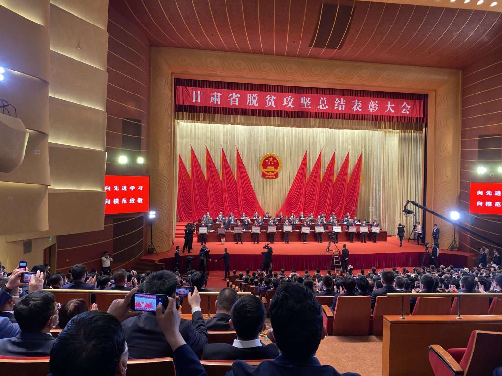 5月20日上午,甘肃省脱贫攻坚总结表彰大会在兰州隆重举行,省委书记、省人大常委会主任尹弘出席大会并讲话,省委副书记、省长任振鹤主持会议。省委副书记孙伟宣读了《中共甘肃省委甘肃省人民政府关于表彰全省脱贫攻坚先进个人和先进集体的决定》。兰州交通大学帮扶办荣获“全省脱贫攻坚先进集体”荣誉称号,石粉霞同志荣获“全省脱贫攻坚先进个人”荣誉称号,校党委书记杨子江和受表彰先进个人出席了表彰大会。