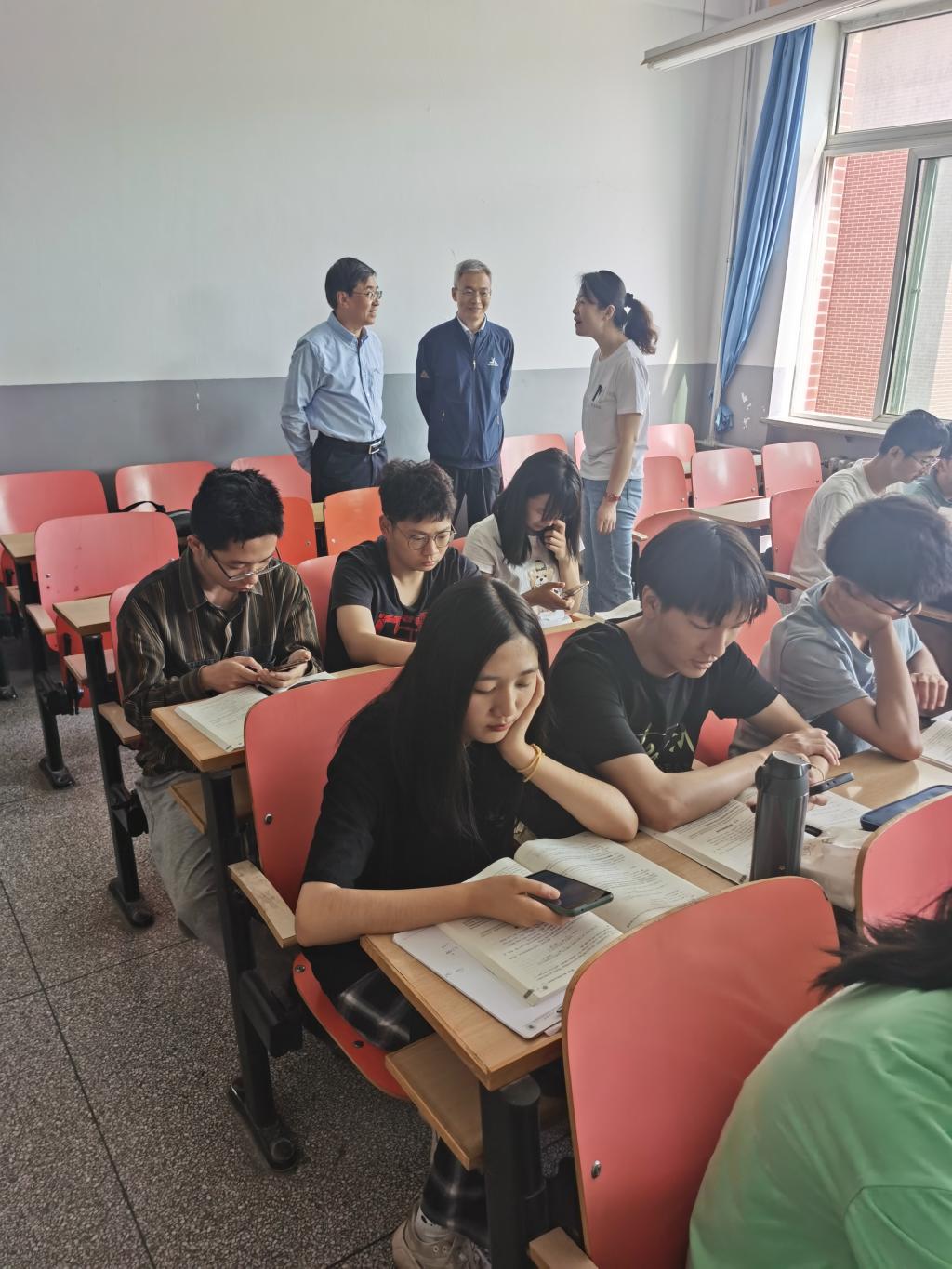 李引珍认真听课,对教学内容做了详细记录,并对教师的授课效果、学生课堂表现等情况进行了评价。课后,李引珍与全体学生进行亲切交流,并提出了三点要求:第一要坚定理想信念,认真学好每一门课程,顺利完成学业。第二要学好基础课,为将来专业学习做好知识储备。第三要注重身心健康,加强体育锻炼,做到德智体美劳全面发展。
