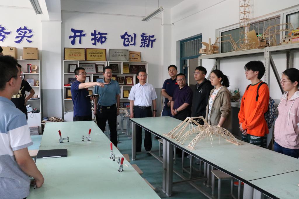 在刚结束不久的甘肃省第四届大学生结构设计竞赛暨第十四届全国大学结构设计竞赛分区赛中,土木工程学院代表队成绩优异。陈兴冲同土木1802班同学参观了位于第三教学楼的大学生结构设计创新实践基地。学院团委科技创新中心及结构设计协会的同学们,对近年来基地所做的工作和取得的成绩为各位老师和同学进行了详细讲解。结构设计不仅考核同学们的的建模能力、动手设计能力,还对同学们的力学功底、结构知识等综合运用能力有很高要求。比赛赛制采用“理论方案+现场制作+陈述与答辩+加载试验”形式,是全国性9大学科竞赛资助项目之一,被誉为“土木皇冠上最璀璨的明珠”。陈兴冲对同学们取得的成绩进行了肯定,对即将参加国赛的同学进行勉励,预祝取得更好成绩。