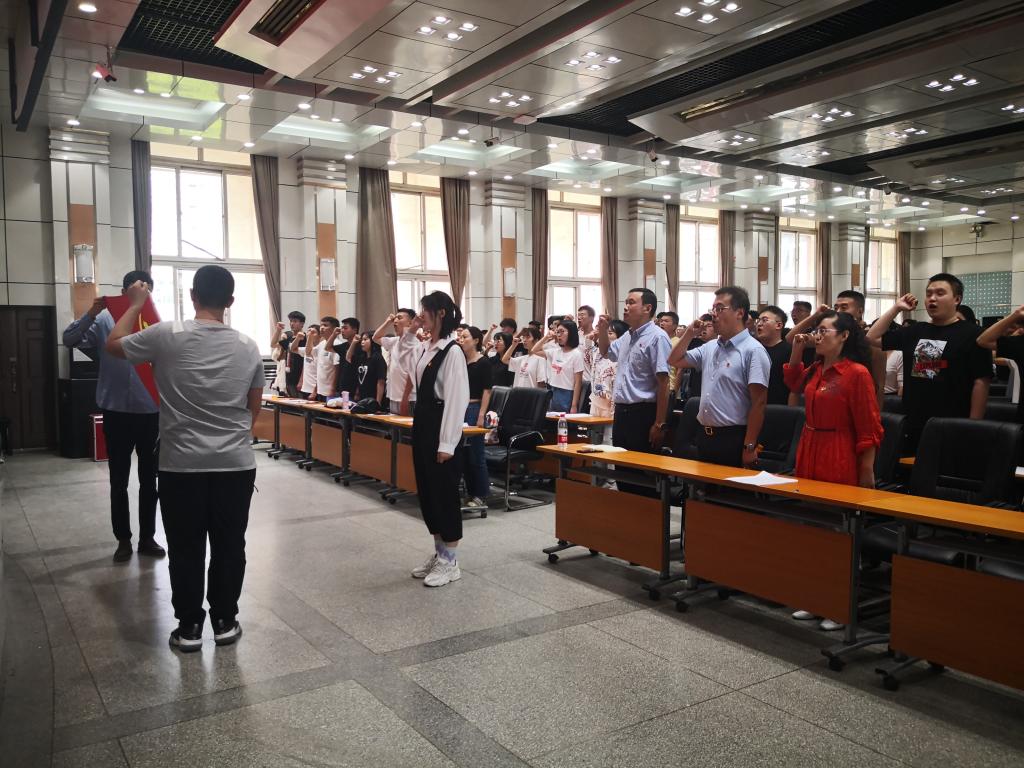 大会在庄严的国歌中拉开序幕。全体与会党员在毕业生党员代表魏建菁的带领下,举起右手,面向党旗,庄严宣誓,共同重温了入党誓词。