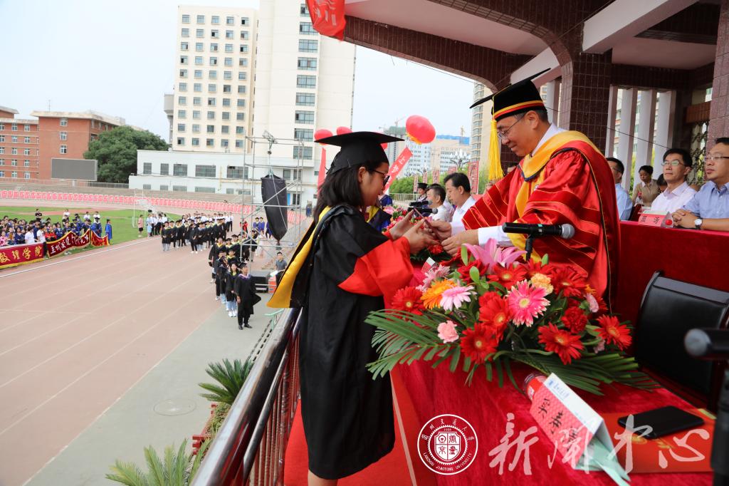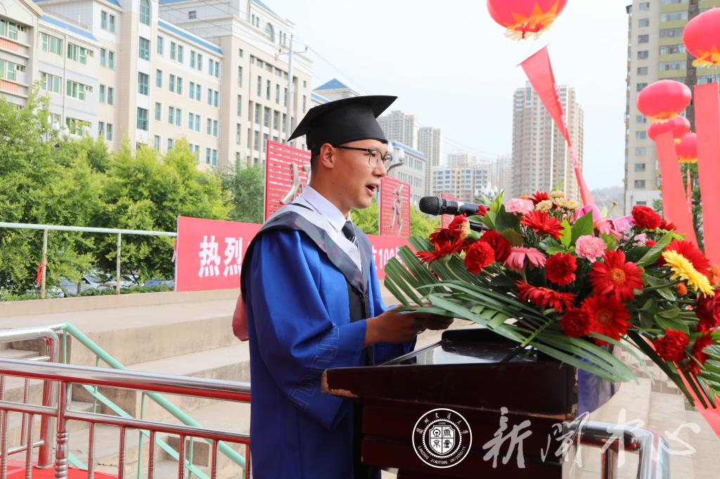 毕业典礼最后,马军党副校长嘱托大家:希望同学们勇挑历史使命,坚定前进信心,立大志、明大德、成大才、担大任,用勤劳的双手和创新的才干,书写绚烂多彩的人生篇章。让无悔的青春在为祖国、为民族、为人民、为人类的不懈奋斗中绽放绚丽的花朵。