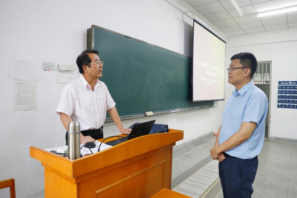 课后,贡力与任课教师就听课情况进行了亲切的交流,对课堂上教师认真负责的教学态度,学生良好的听课状态以及学术性、思想性、理论性兼具的研究式教学方式表示了肯定,同时也对授课过程中存在的部分问题提出了针对性的意见和建议。