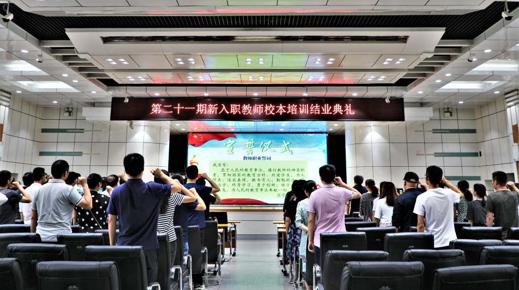 结业典礼上,为深入贯彻落实全国、全省教育大会精神、新时代全国高等学校本科教育工作会议精神以及《国务院关于加强教师队伍建设的意见》文件精神,教师发展中心组织全体参训教师在马应保老师的带领下进行教师职业誓词宣誓,句句铿锵有力的话语表达了全体新入职教师忠于教育事业、愿为教育事业奉献一切的决心和信心。接着学员代表材料学院的路旭斌老师作了交流发言,他表示校本培训体系形式多样、内容丰富,全体新入职教师定将学以致用,不断提升工作能力,为学校发展建功立业,不断提升综合素养,更快适应新的工作生活,站稳站好各自的岗位,向着“有理想信念、有道德情操、有扎实学识、有仁爱之心”好教师的目标不断迈进。最后各位专家为优秀学员代表颁发了结业证书。