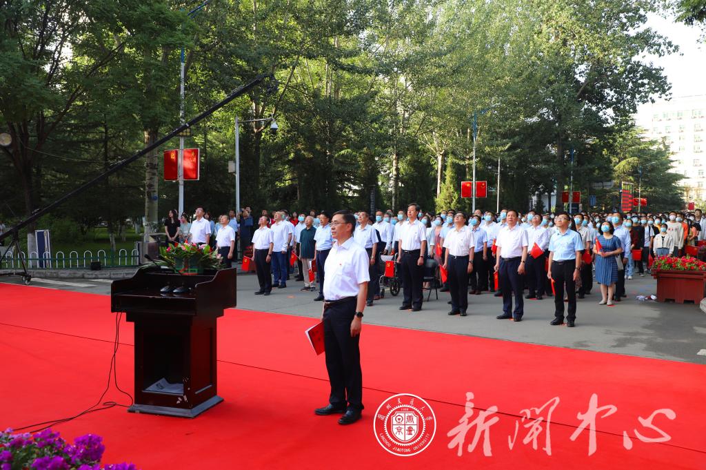 7月1日,兰州交通大学庆祝中国共产党成立100周年“七·一”升国旗仪式在图书馆国旗台前举行。校领导杨子江、李引珍、买寿清、陈兴冲、马军党、党建武、范爱国、朱廷珺、贡力,校长助理李新刚,老革命代表,老领导代表,优秀教师代表,全体职能部处负责人,各学院党委书记、副书记、团委书记及学生党员代表共计800余人参加了此次升旗仪式。升旗仪式由校党委副书记、校长李引珍主持。