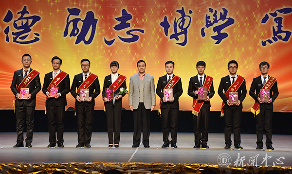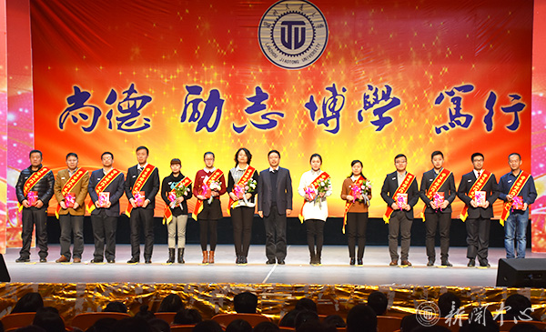 学校领导和社会企业代表在昂扬向上的颁奖曲中向获奖集体和先进个人颁发了奖牌和荣誉证书。