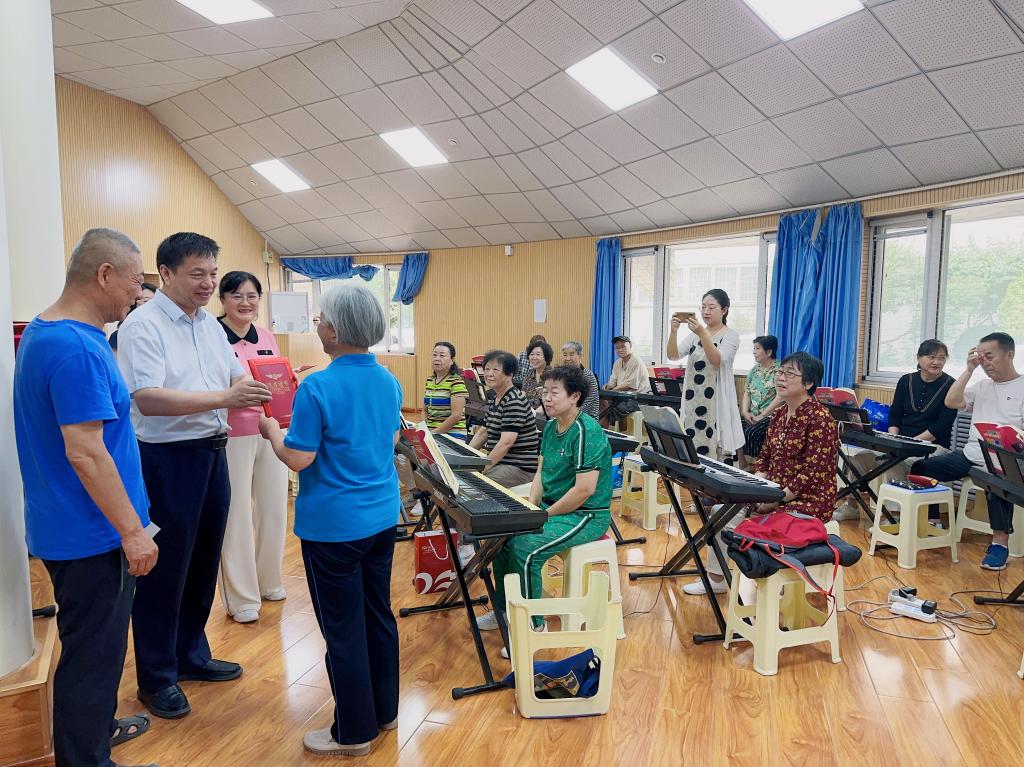 7月5日上午,校党委常委、副校长朱廷珺来到老年大学,亲切看望了正在授课的老年大学电子琴班第一期的老师和学员,并为学员颁发《结业证书》。朱廷珺对完成学业的学员表示祝贺,对辛勤教学的老师表示感谢。