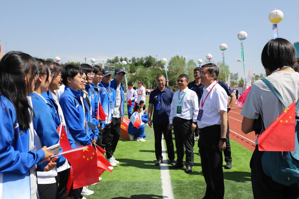 开幕式结束后,李引珍、陈兴冲慰问参赛运动员、教练员及现场工作人员并与他们进行交流。李引珍详细询问师生们的饮食、住宿等生活问题,对大家无惧酷暑的拼搏努力、进取自信的积极心态和取得的优异成绩给予了充分肯定。他鼓励运动员要弘扬良好的体育精神和道德风尚,以充沛饱满的热情和积极自信的心态参加比赛,为校争光。李引珍要求,各领队教练及队员们应时刻把安全放在首位,注意防伤防病,在运动安全、防暑等方面落细抓实,并请大家安心备战比赛,学校将为大家提供全方位保障,做好坚强后盾,确保比赛顺利、安全、圆满完成。运动员及各位领队教练倍感鼓舞,纷纷表示会做好自己的本职工作,不负学校期望与嘱托。
