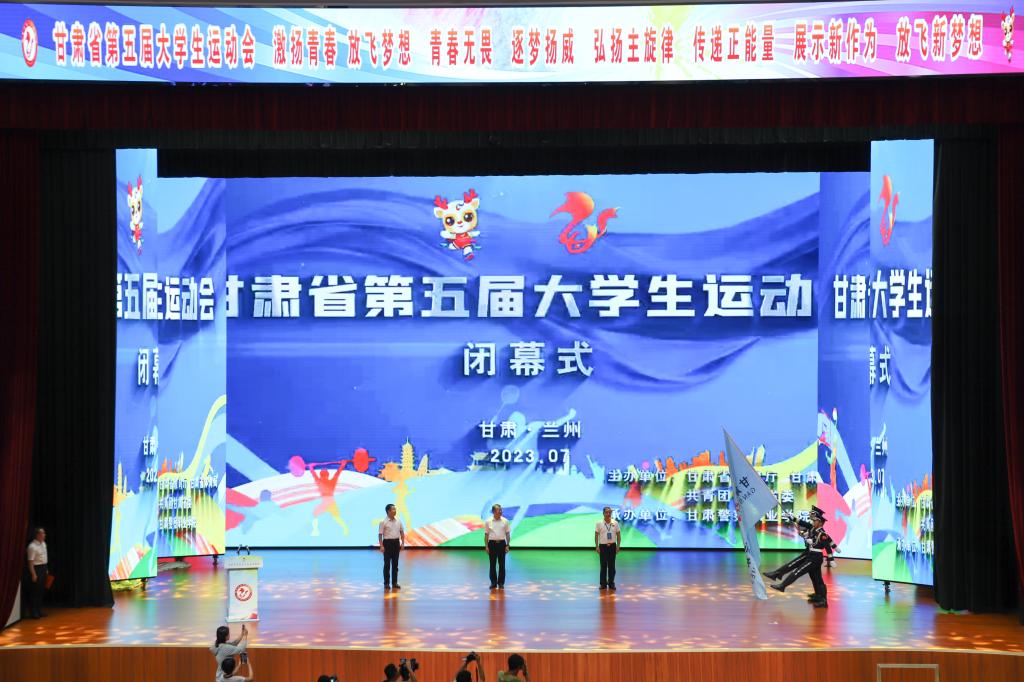 7月29日,历时15天的甘肃省第五届大学生运动会在甘肃警察职业学院落下帷幕。来自各参赛高校代表团的领导及成员,和部分代表团领队、教练员及运动员参加了闭幕式。