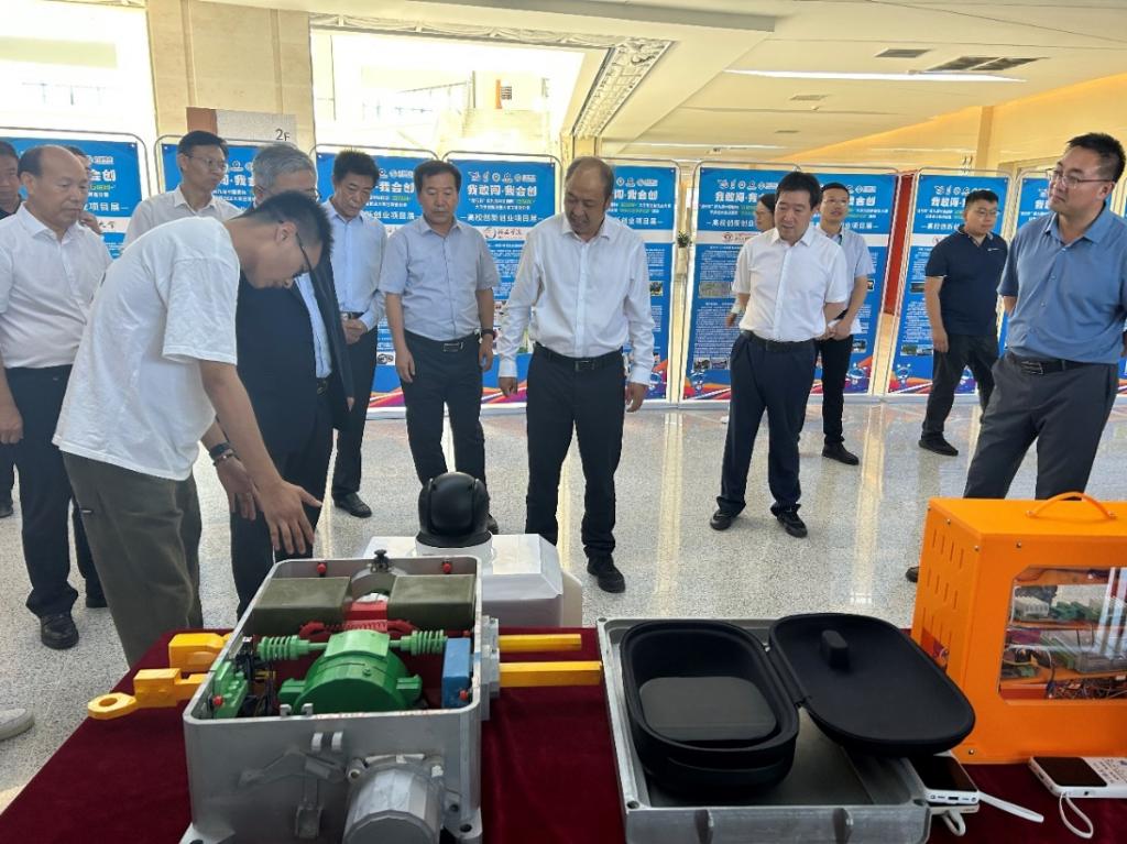 颁奖仪式上,张国珍在讲话中要求各高校要以能力提升为中心,把高质量创新创业教育作为提升人才培养质量的强大内核,深入推动专创融合、思创融合,切实提高学生的创新精神、创业意识和创新创业能力。本届赛事由甘肃农业大学承办,颁奖仪式上,张国珍为第十届“互联网+”大学生创新创业大赛承办学校兰州理工大学移交了会旗。本届大赛4个冠军奖项目进行了路演展示,金奖项目学生代表作了发言。颁奖仪式前,张国珍一行参观了大赛项目成果展。