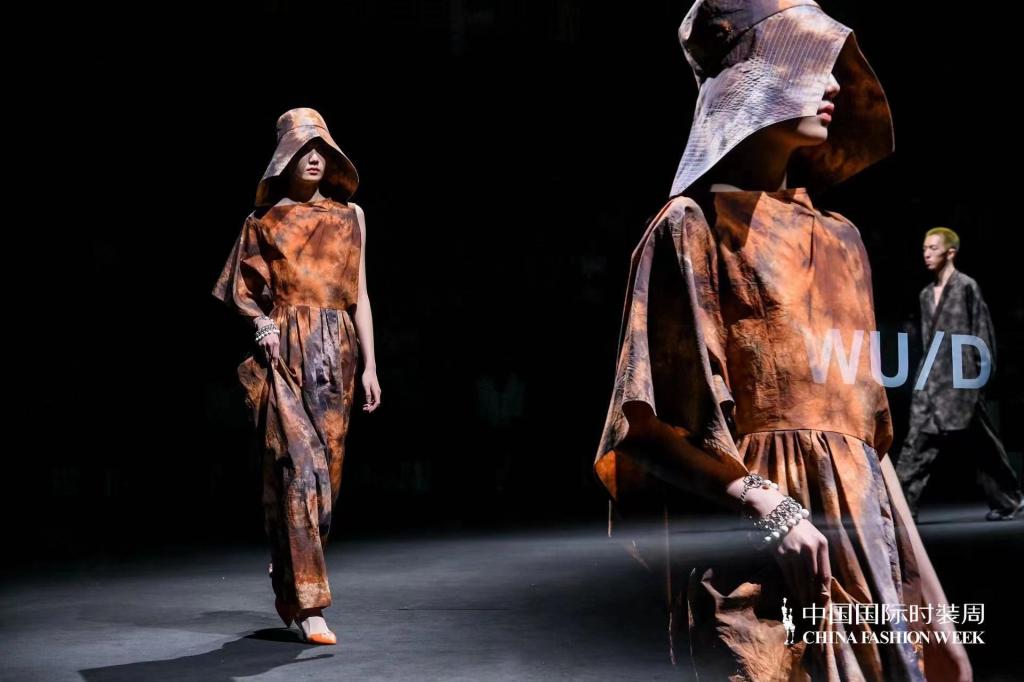 为筹备此次中国国际时装周的品牌发布会,武学伟老师与我校染缬艺术创作团队进行了长时间的交流与沟通,由我校特聘教授管兰生老师主持设计,染缬艺术研究所师生全员参与,完成了10余款手工印染面料的设计制作。用这批手工印染面料完成的时装也成为了本次发布会上最为引人注目的亮点。