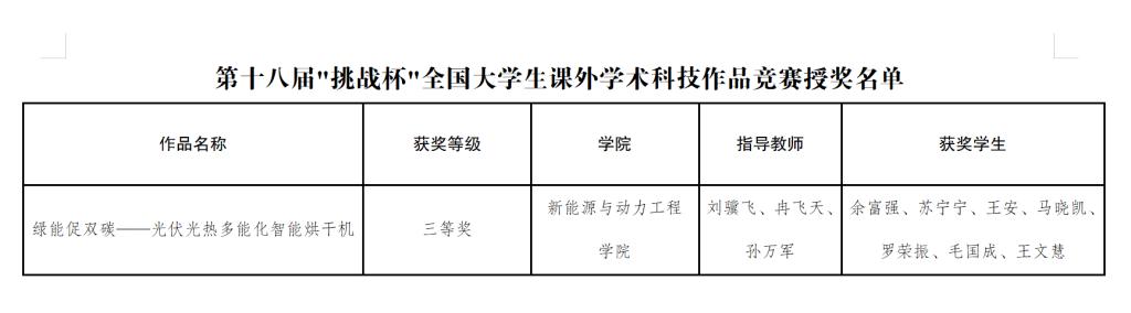 我校作品《绿能促双碳——光伏光热多能化智能烘干机》荣获主体赛道三等奖。“黑科技”展示活动中,作品《“随芯”而动——新型便携纸基分析器件引航者》被评定为“恒星”级;作品《“智轨星”——轨道智能检测的启明星》《水上精灵——漂浮式光伏救助站》《太阳能智能灌溉系统》被评定为“行星”级。
