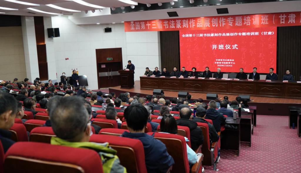 11月24日上午,全国第十三届书法篆刻作品展创作专题培训班开班仪式在兰州交通大学尚德楼三楼大报告厅举行。中国文联书法艺术中心原主任、中国书法家协会学术委员会原副主任刘恒,中国书法家协会草书委员会委员栾金广、刘长龙,全国(教育)书画协会常务理事、河南省书法家协会理事程志宏,中国书法家协会会员、西泠印社社员汤忠辉,甘肃省文联党组成员、副主席张有为,中国书法家协会理事、甘肃省文联副主席、甘肃省书法家协会主席安文丽,中国书法家协会理事、甘肃省书法家协会常务副主席陈新长,甘肃省书法家协会副主席张万胜、汪志刚、李维君,秘书长赵玉民,我校党委副书记贡力出席开班仪式,兰州交通大学原副校长马军党主持了专题讲座,开班仪式由甘肃省书法教育中心负责人主持。