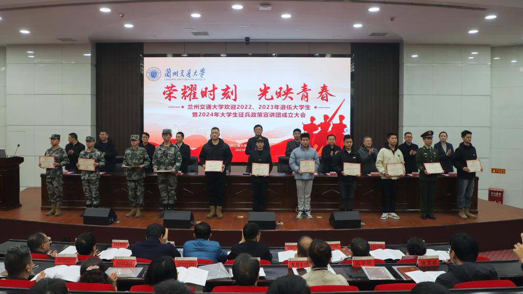 11月30日下午,我校欢迎2022—2023年退伍大学生暨2024年征兵政策宣讲团成立大会在尚德楼三楼大报告厅举行。校党委副书记贡力出席并讲话,安宁区武装部相关负责同志出席大会。大会由学生工作(部)处、党委人民武装部负责人主持。
