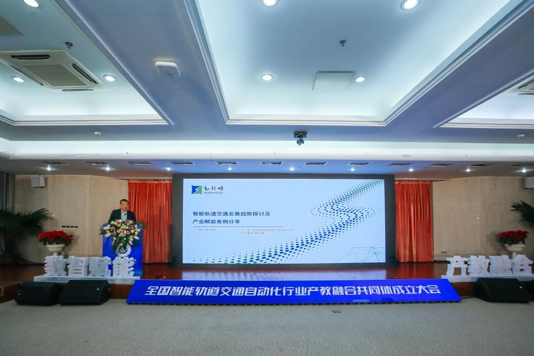 在热烈的掌声中,与会嘉宾代表共同按下“全国智能轨道交通自动化行业产教融合共同体”启动光柱。在专题报告环节,中国工程院院士、中国中车首席科学家丁荣军院士以“轨道交通运载装备控制技术的发展”为题作报告,分享了我国轨道交通行业装备制造的最新科技进展和研究成果。北京和利时系统工程有限公司总工程师、副总裁汪小亮以“智能轨道交通发展趋势探讨及产业赋能案例分享”为题作报告,分享了企业在人才培养、实训基地建设、职业培训、职业认证、教学竞赛等产教融合方面的成果经验。