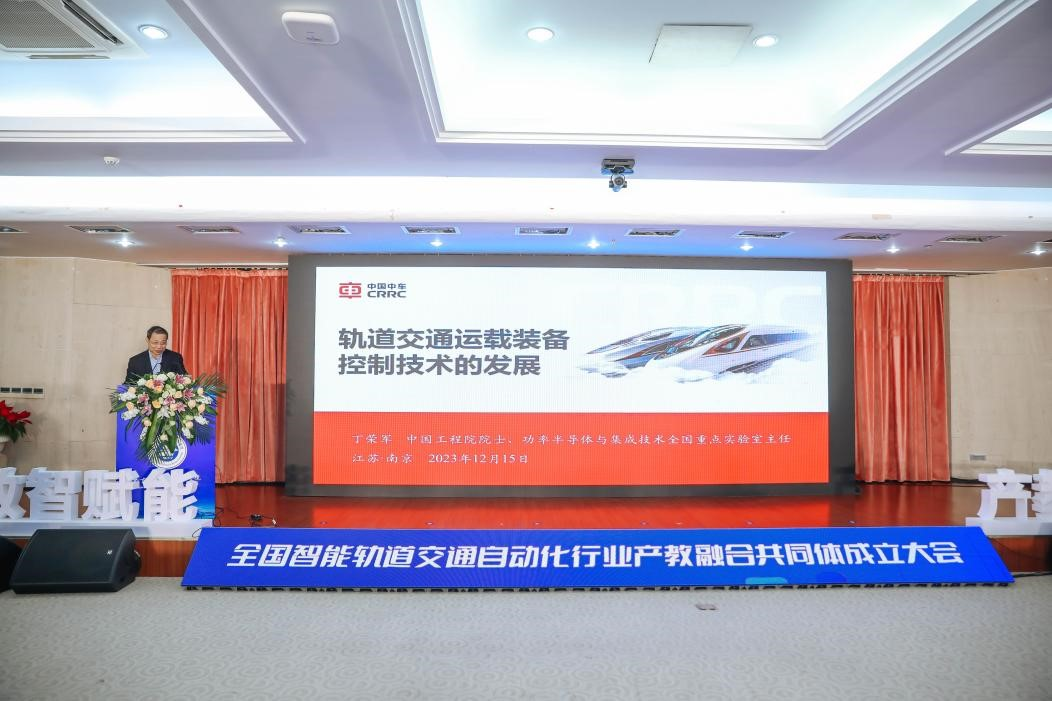 12月15日,以“数智赋能、产教融合”为主题的全国智能轨道交通自动化行业产教融合共同体成立大会在南京铁道职业技术学院举行。全国智能轨道交通自动化行业产教融合共同体由北京和利时系统工程有限公司、兰州交通大学、南京铁道职业技术学院牵头成立,为第一届理事会理事长单位。中国工程院院士、中国中车首席科学家丁荣军,中国教育国际交流协会认证工作委员会副主任、教育部教育督导局原副局长林仕梁,江苏省教育厅副厅长曹玉梅,兰州交通大学党委常委、副校长陈光武,江苏省教育厅职教处处长马万全,北京和利时系统工程有限公司总裁李智,南京铁道职业技术学院党委书记贺兴初,新疆铁道职业技术学院党委副书记、校长陈捷及来自41所高校与11家企业的百余名代表参会。