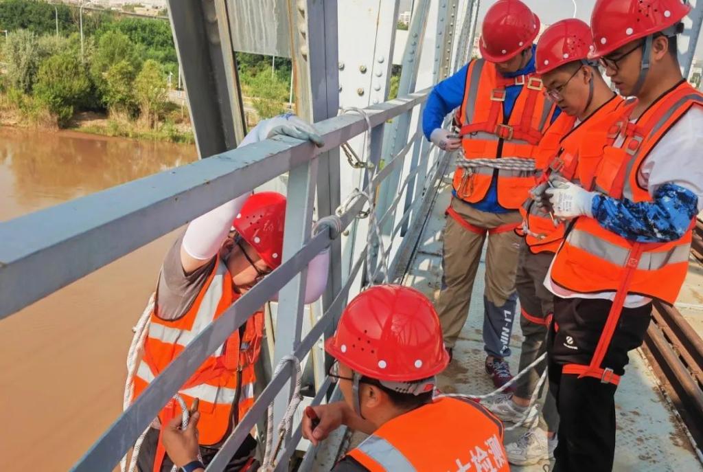 但团队所走并不是一道坦途。近期开展的中核兰铀黄河铁桥检测项目,无论是在检测规模、检测内容还是检测时间来说,都是最具挑战性的。蔺鹏臻指出:“对于这座年近古稀的桥梁,初期建筑和后期管维资料相对不足;桥梁服役时间过长,安全性和稳定性面临的潜在威胁众多等等都是一众存在的问题。”而此次全方位、多角度的检测分析,是大桥建成以来最全面的“健康体检”——不包括前期准备阶段,仅从入厂检测到最终形成评估报告耗时4月有余;检测内容涉及桥梁静动载试验、基础冲刷等20余项。