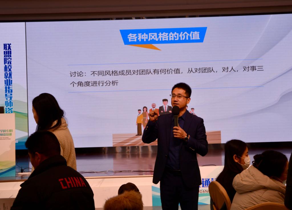 培训分为职业素养课程、就业指导技能提升两个模块。鹏程管理学院院长王鹏程讲授版权课程《职场幸福课》,课程共分为思维模式、自我发展、人际关系、工作意义等四个模块,以分组讨论的互动式授课为主,引导学员探索自我与世界、与未来、与他人的关系。提升自我管理发展与认识教师职业的意义和使命,为教师成长赋能。在就业指导技能提升模块,我校凌翔老师带来《咨询技术在就业指导中的应用》《生涯大赛解析与参赛要点》《就业技能及案例设计大赛解析与参赛要点》等相关分享,并就具体问题与参训教师进行深入交流。、