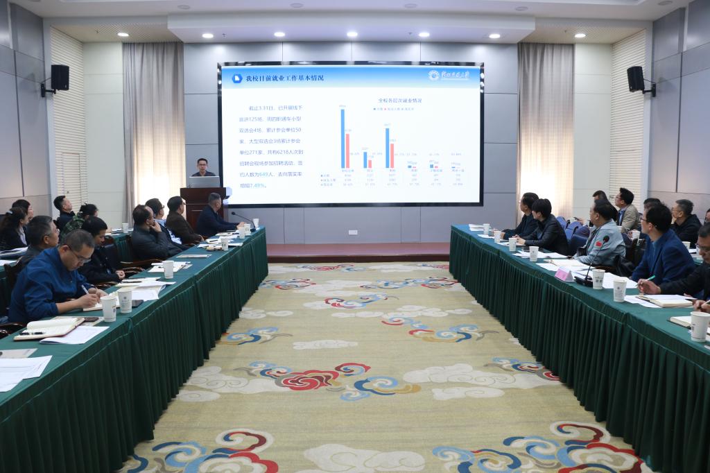 4月3日上午,学校在尚德楼三楼中型报告厅会议室召开2024届毕业生就业工作推进会,会议由副校长苏程主持。党委研究生工作部、招生就业处主要负责人,各学院(部)就业工作领导小组组长和分管就业(研究生、本科、高职)工作的负责同志参加了会议。