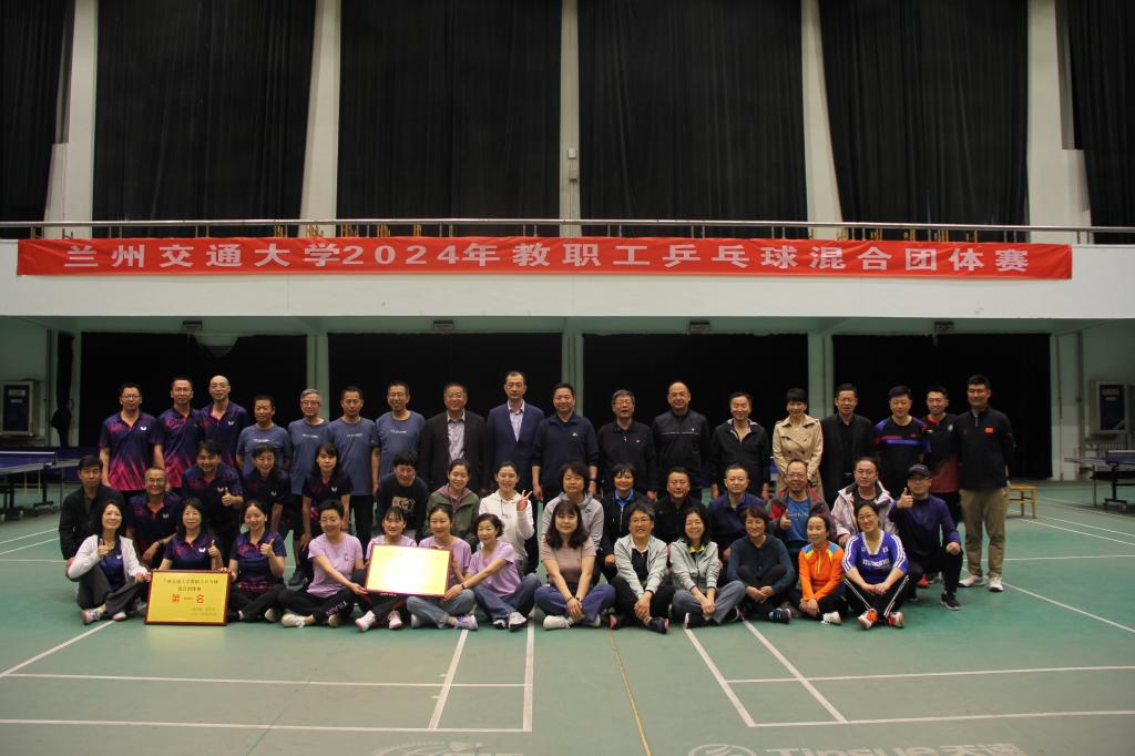 4月18日晚,兰州交通大学2024年教职工乒乓球混合团体赛在天佑体育馆落下帷幕。校领导朱廷珺、范爱国、陈光武出席闭幕式并为获奖代表队颁奖。