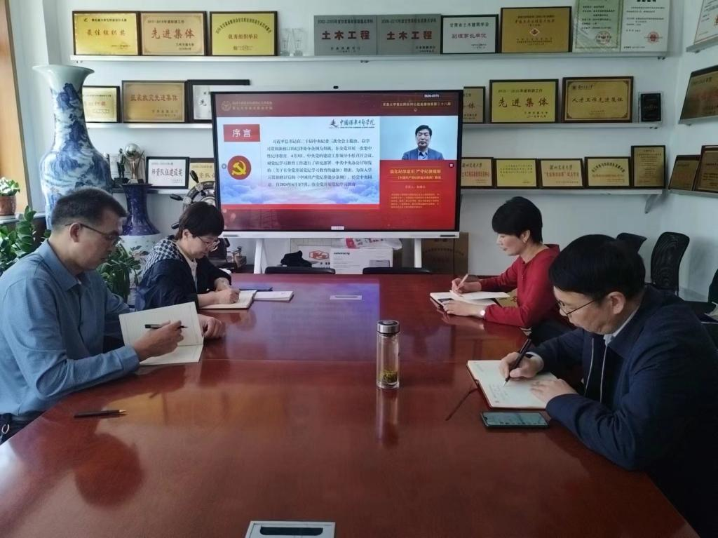 土木学院召开党纪学习教育读书班专题辅导报告会。学院领导、党委委员及全体师生党员参加了由全国干部教育基地培训浙江大学基地组织的直播讲座,讲座由中国浦东干部学院中国特色社会主义研究院院长刘靖北教授主讲。