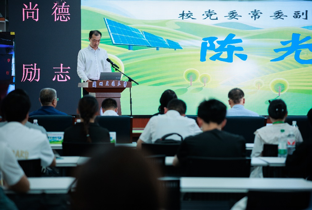 陈光武致开幕辞。他首先表达了对参会领导、专家和各高校参赛师生的欢迎。他表示,节能减排是党中央、国务院作出的重大决策部署,是立足新发展阶段、贯彻新发展理念、构建新发展格局,推动经济社会发展全面绿色转型的重要举措。本届大赛的主题是“节能减排,绿色能源”。大赛紧密围绕“双碳”战略目标等国家重大需求,充分体现“节能减排,主动作为;实践创新,交融育人”的精髓以及“点亮生命,绽放生命”的价值追求。相信本次大赛定能够成为省内各高校相互学习、展现自我、协同发展的成功赛事,成为大家展示创新精神和实践能力的综合平台,起到以赛促教、以赛促学、以赛促改、以赛促建的良好效果。
