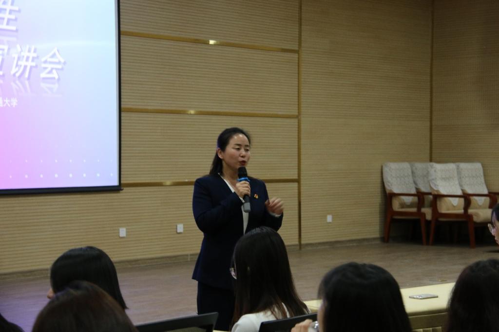 5月30日晚,2024年甘肃省大学生就业引航计划示范宣讲会在兰州交通大学笃行楼五楼中翼报告厅举行。全国三八红旗手、全国五一劳动奖章、全国最美家庭、全国巾帼建功标兵获得者、兰州交通大学土木工程学院校友、中铁九局大连分公司海外经营开发中心党支部书记徐培培应邀来校,为学校广大师生作了题为“巾帼筑梦,绽放在‘一带一路’”的就业引航专题宣讲。校团委、招生就业处等职能部处相关负责人和工作人员,土木工程学院学生工作负责人,全校女生代表200余人参加宣讲会。
