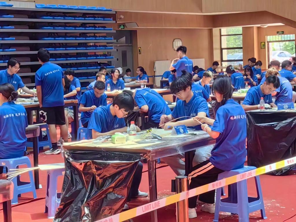 此次竞赛赛题为“考虑水平振动的高耸塔式结构设计与模型制作”,要求参赛选手3人一组在12个小时的时间内独立完成模型的设计和制作。专家根据理论方案、结构选型、制作质量、现场陈述、加载表现以及荷重比等多个方面进行打分。来自省内16所高校、47支参赛队伍共计304人参加了本次竞赛。