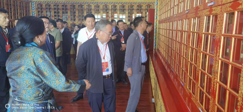 庆典大会前,王爱平应邀参加了艺术教学成果展演,参观了学校校史馆、师生书画作品展、高原动植物认知馆、中华优秀传统文化传承馆、河洮岷文献典藏室及藏文文献典藏室。