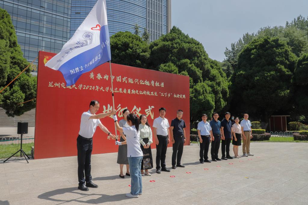 陈光武宣布兰州交通大学2024年暑期“三下乡”社会实践团出征。